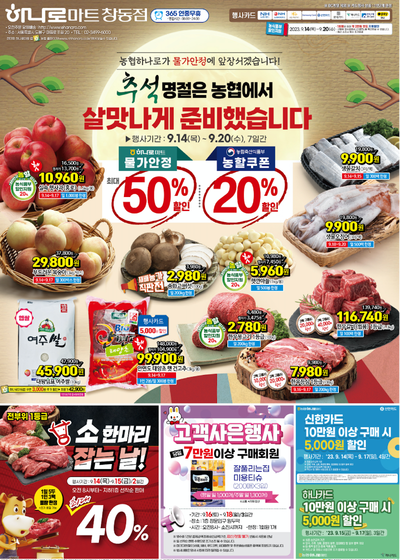 하나로마트 추석맞이 할인행사, 기간 중에 꼭 알뜰쇼핑하시고 즐거운 추석명절 준비하시기 바랍니다.